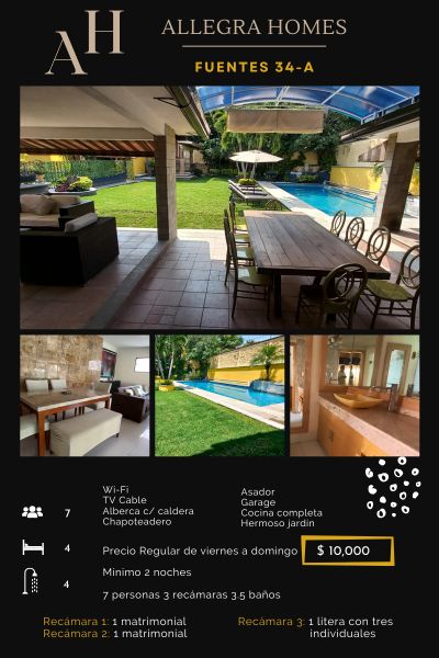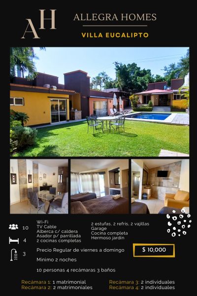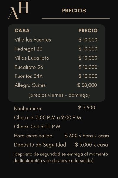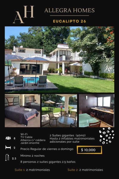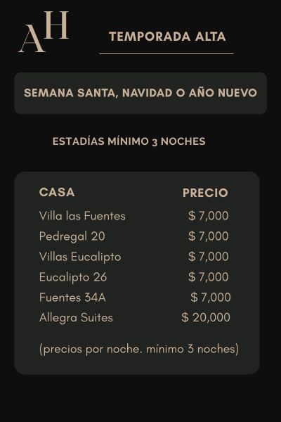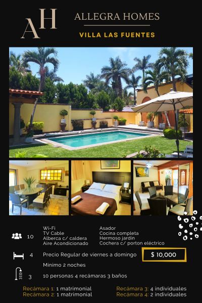 Hospedaje Mixto Único: 9 habitaciones tipo hotel dentro del jardín (Allegra Suites) & 5 casas de fin de semana a un minuto en auto (Allegra Homes).